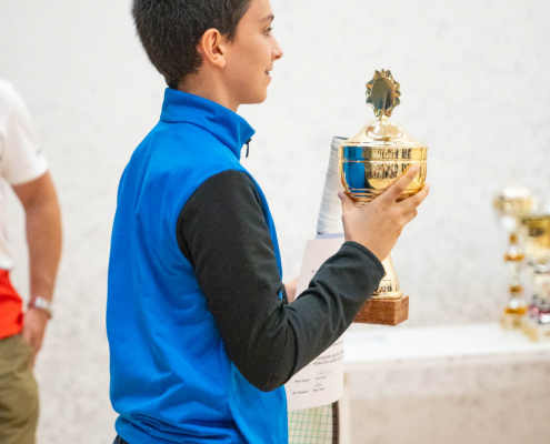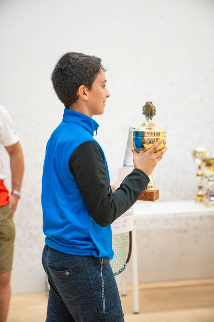Der 12-jährige Squasher aus dem TSR war als Nr. 1 in seiner Kategorie U13 gesetzt. Die Erwartungen waren gross und Marcos konnte sich ohne Satzverlust bis ins Finale durchschlagen. Da traf er auf den als Nr. 2 gesetzten Hendrik Syed, ein Junior aus Schlieren. Dieser war vor einigen Wochen mit Marcos am Ländervergleichskampf in Königsbrunn, Deutschland, mit dabei. Die Anspannung vor dem Finale war gross. Marcos hat in den vergangenen Wochen grosse Fortschritte gemacht und konnte diese auf dem Squashcourt im Finale zeigen. Nach etwas mehr als 30 Minuten war die Partie mit 3:0 (11:7, 11:7, 11:7) zu Ende und Marcos wurde zum U13-Schweizermeister gekürt.